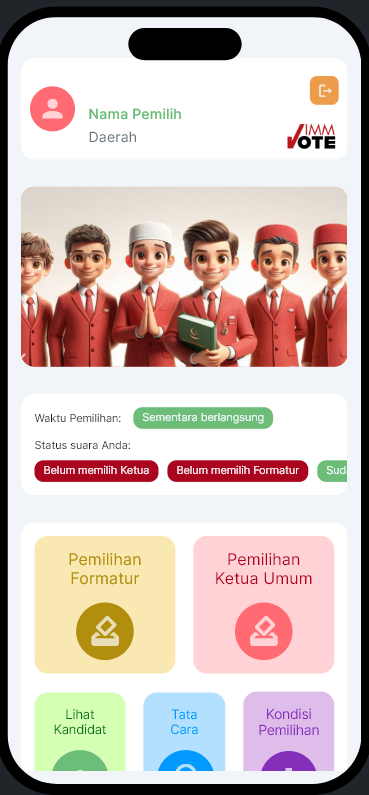 IMM Vote adalah sebuah sistem informasi digital yang dirancang khusus untuk mendukung proses pemilihan Ketua Umum dan Formatur dalam lingkungan organisasi IMM (Ikatan Mahasiswa Muhammadiyah). Aplikasi ini bertujuan untuk menghadirkan mekanisme pemilihan yang transparan, akuntabel, dan efisien.